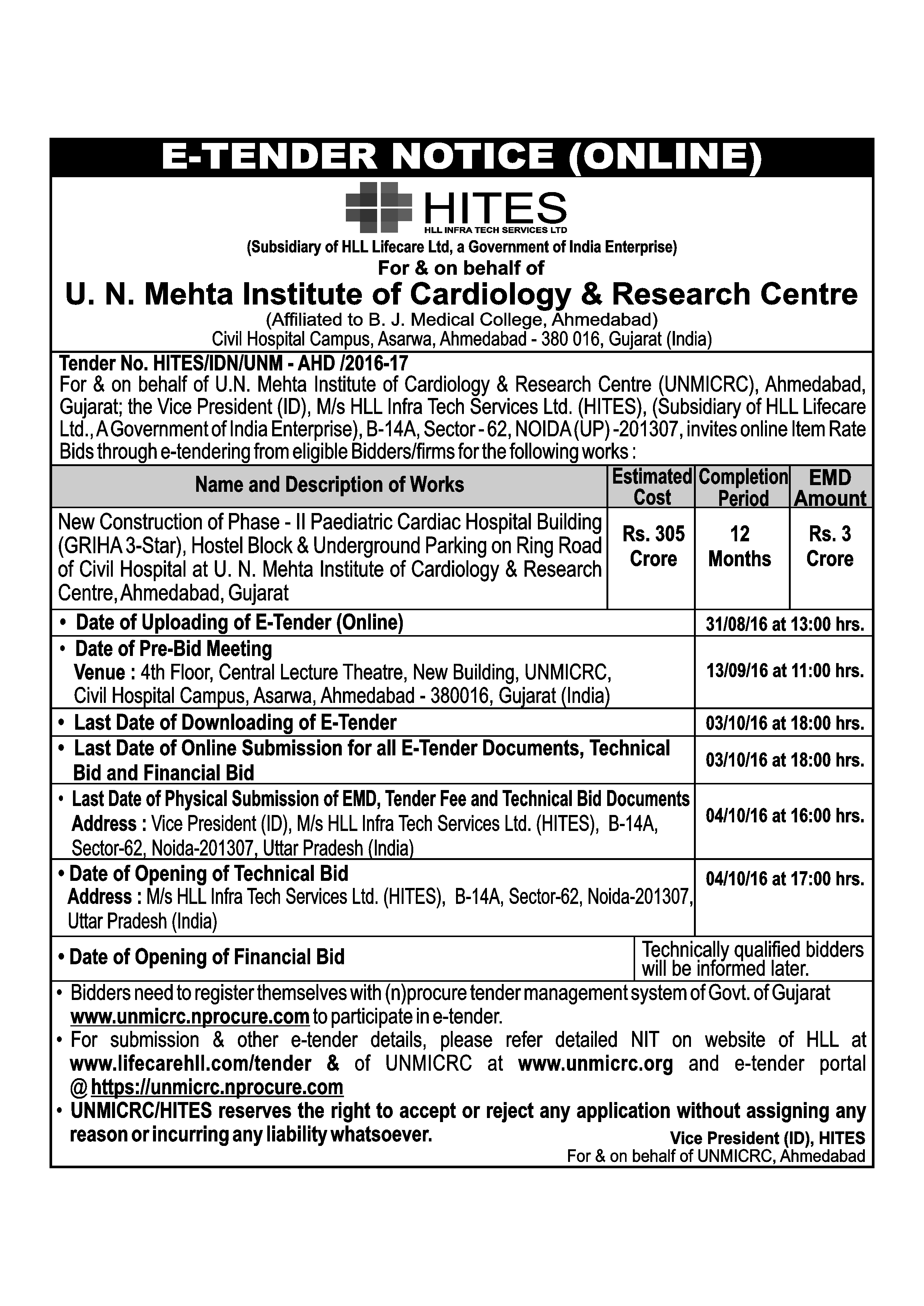 | Bid for Enlistment of Contractors (Civil) for Various Construction Works of HLL Lifecare Limited | 447 kB | Download |
